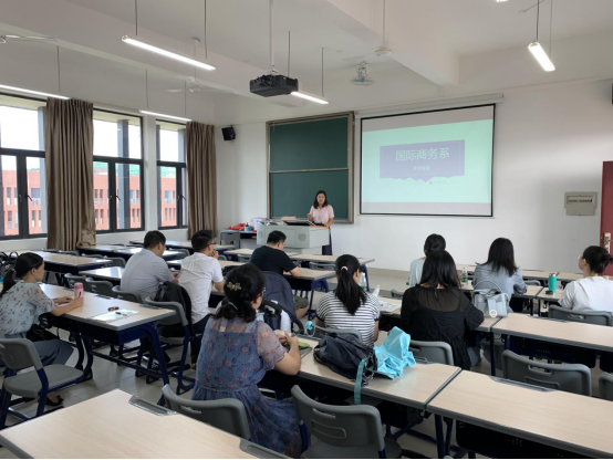 会议一开始,刘主任就向大家介绍我系2019级的招生情况,根据学院招生办的统计,预计我系2019级新生约有70人,对此情况,刘主任让每一位老师都要做好迎新的工作。接着刘主任向各位老师公布上学期的教学任务工作量完成情况以及考核的总评分数,获得高分的教师请继续保持,分数不是太理想的老师则需要好好努力了。接着刘主任就向各位老师分布本学期各自的工作任务安排,其中特别强调了9月中的澳洲TAFE学院外教接待事宜和11月中举行的校运会,刘主任希望各位老师都能踊跃参加,展现国际商务系的光彩。