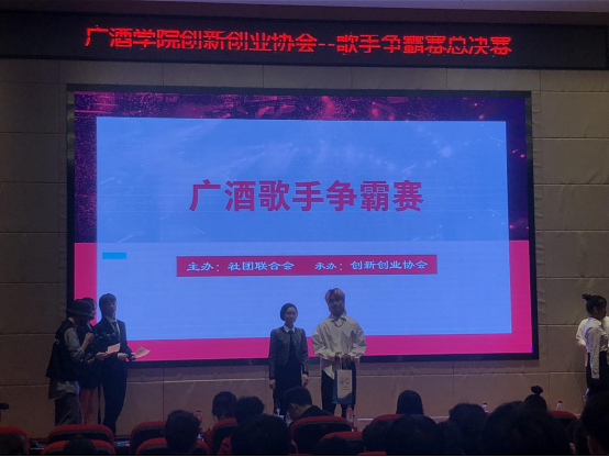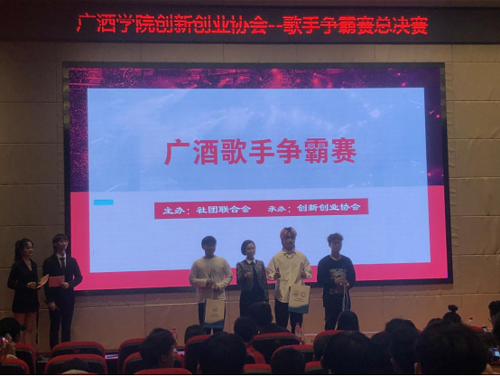 由广酒创协举办的广酒歌手争霸赛经过几周的精彩角逐,通过初赛复赛的层层筛选,进入决赛的十位优秀选手于周四(11月12日)晚上在学术报告厅进行最后的比拼,而第一、二、三名也随着比赛的结束,主持人公布比赛结果而出炉,前三名分别是:刘周华(第一名)、李应龙(第二名)、李俊业(第三名),由医养与教育学院音乐表演专业教师陈榕进行颁奖。(医养与教育学院通讯员)
