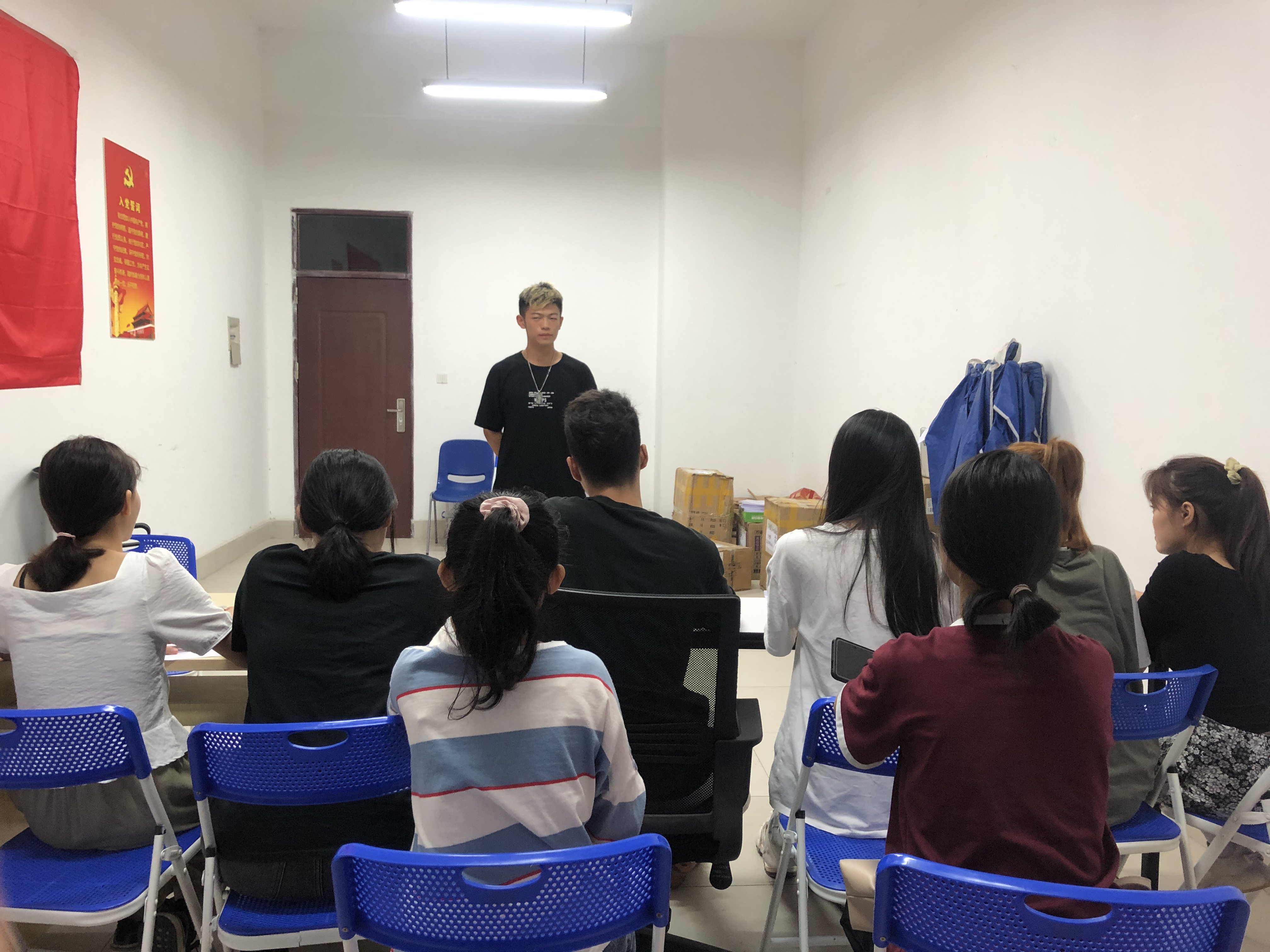 2020年11月19日晚七点,由学生会主席团和各学生会部门负责人组织新一届学生会纳新面试在综合楼311教室顺利开展,主席团代表沈煊淼,学生会代表外联部负责人梁永乐,班委代表19级健身班长邓海涛等其他部门负责人担任此次面试的面试官。为了让面试者有最优的面试环境和能发挥最佳的面试状态,各人员作出明确的分工。