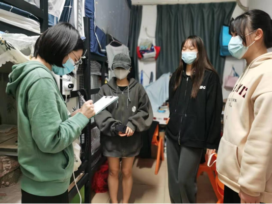 2022年2月28日下午,康养与艺术学院学工科走访返校学生宿舍,了解学生在校状态。