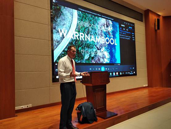 【本院消息】自2017年3月31日我校与澳大利亚TAFE学院签署友好交流协议以来,双方交往密切,每年澳方都派高管专访或顺访我校。连续两年,我校都举办寒暑假澳洲TAFE游学项目及教学交流项目推介会,给学生创造观察和体验澳大利亚生活,了解TAFE教育特色的机会。11月20日至23日,澳大利亚TAFE学院国际部业务部长John Cook教授莅临我校访问,洽商明年春季澳大利亚TAFE学院第一批学生访华交流团到访我校事宜,并与外语系、酒旅系和体艺系师生交流。